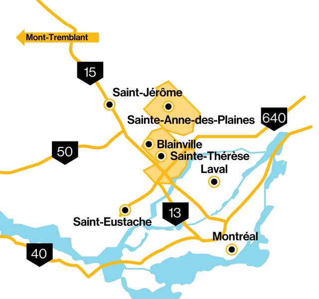 La MRC de Thérèse-De Blainville se distingue par son équilibre entre urbanité et qualité de vie. Baignée par la rivière des Mille-Îles et traversée par trois autoroutes, elle offre un environnement accueillant, propice à l'innovation, au développement durable et à la vie communautaire.