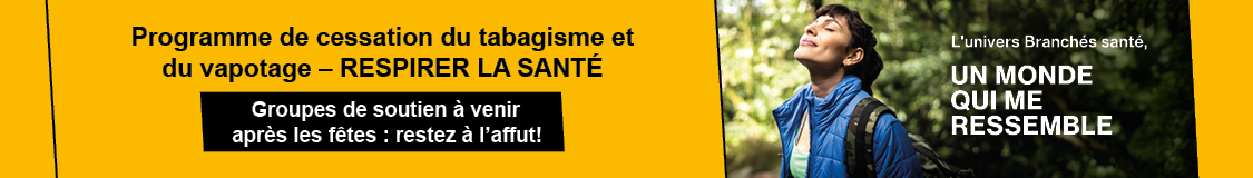 Vous consommez des produits de tabac ou de vapotage et vous souhaitez être accompagné pour cesser ou diminuer votre consommation ? Des groupes de soutien seront offerts dans le cadre du plan d'action transversal Branchés santé 2024-2026. Ces groupes destinés au personnel seront animés par des professionnels des centres d’abandon du tabagisme de la Direction de la santé publique et débuteront en février 2026.